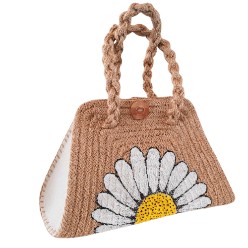 Buy Silkeon™ Daisy Handmade Mini Tote Bag. Handmade woven texture with daisy design, braided handles, and button closure—perfect for daily use, shopping, and travel.