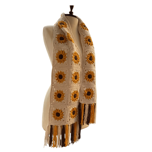 Handmade crochet scarf with sunflower detailing