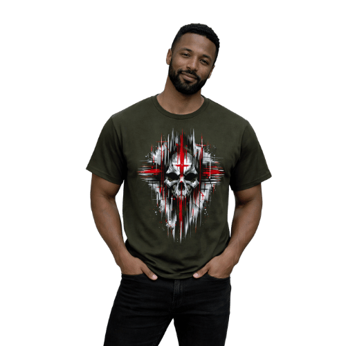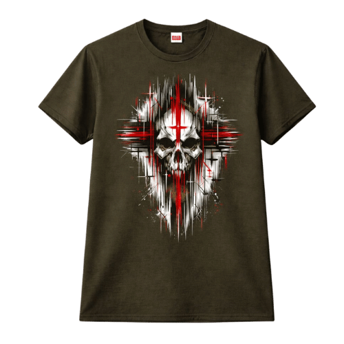 Silkeon™ skull graphic t-shirt featuring a bold red cross design, crafted from premium breathable fabric for edgy streetwear style.