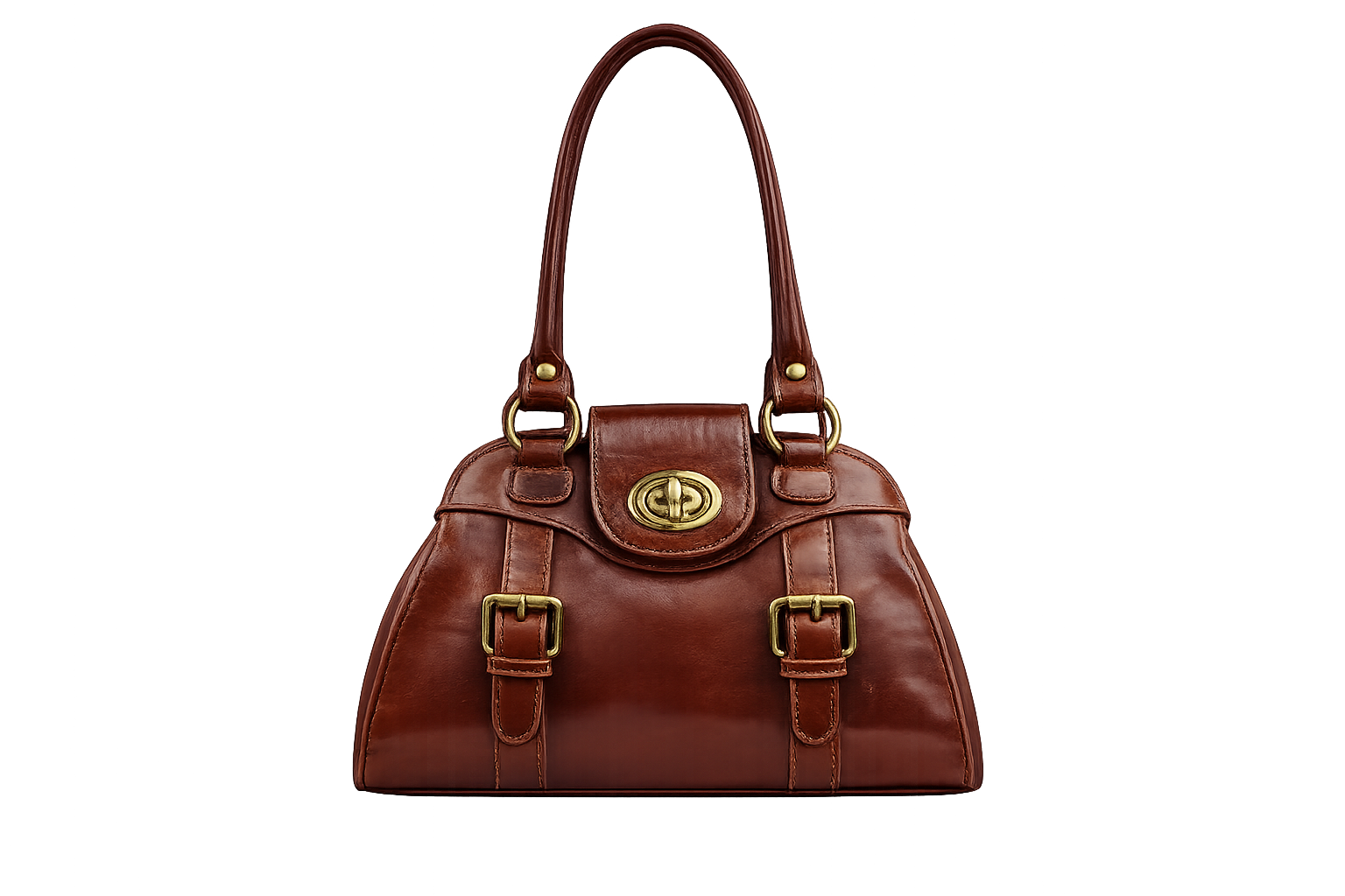Crafted from high-quality leather with a smooth finish, the bag features a structured shape, sturdy top handles, and elegant gold-tone hardware. The secure front clasp closure enhances both style and functionality, while the spacious interior provides ample room for daily essentials. Its rich brown tone makes it a versatile accessory that complements both casual and formal outfits.
